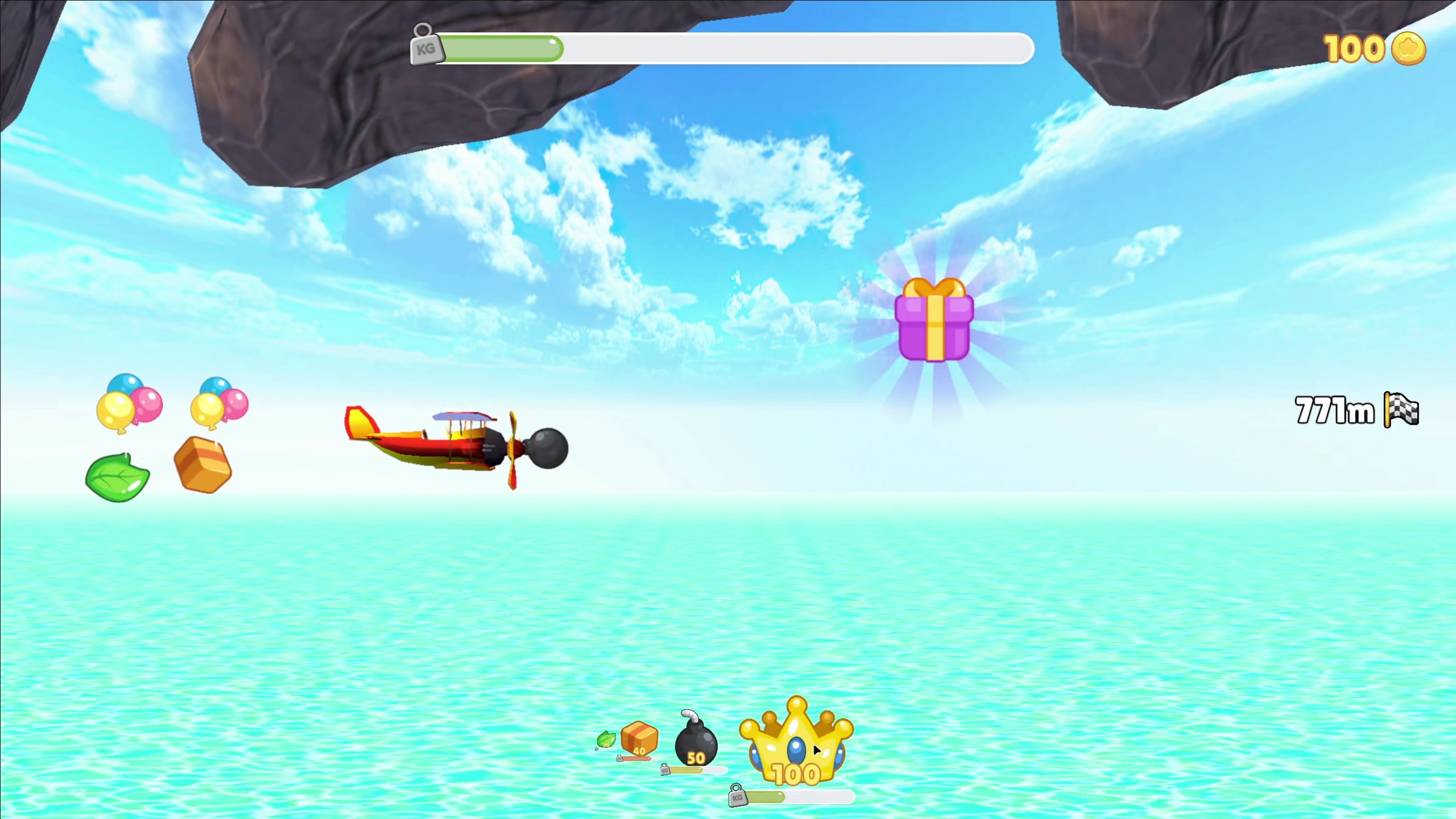 Collecting items makes your plane heavier and more difficult to control, so you will have to part with some of your wealth :(